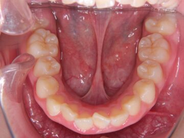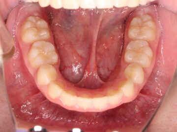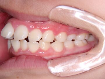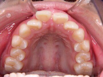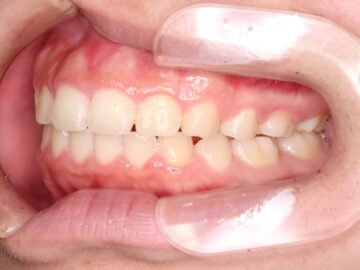 成長期の治療は成人と比べると期間は短く、ヘッドギアを十分な時間装着すれば上顎前歯を綺麗に後退させることができる。